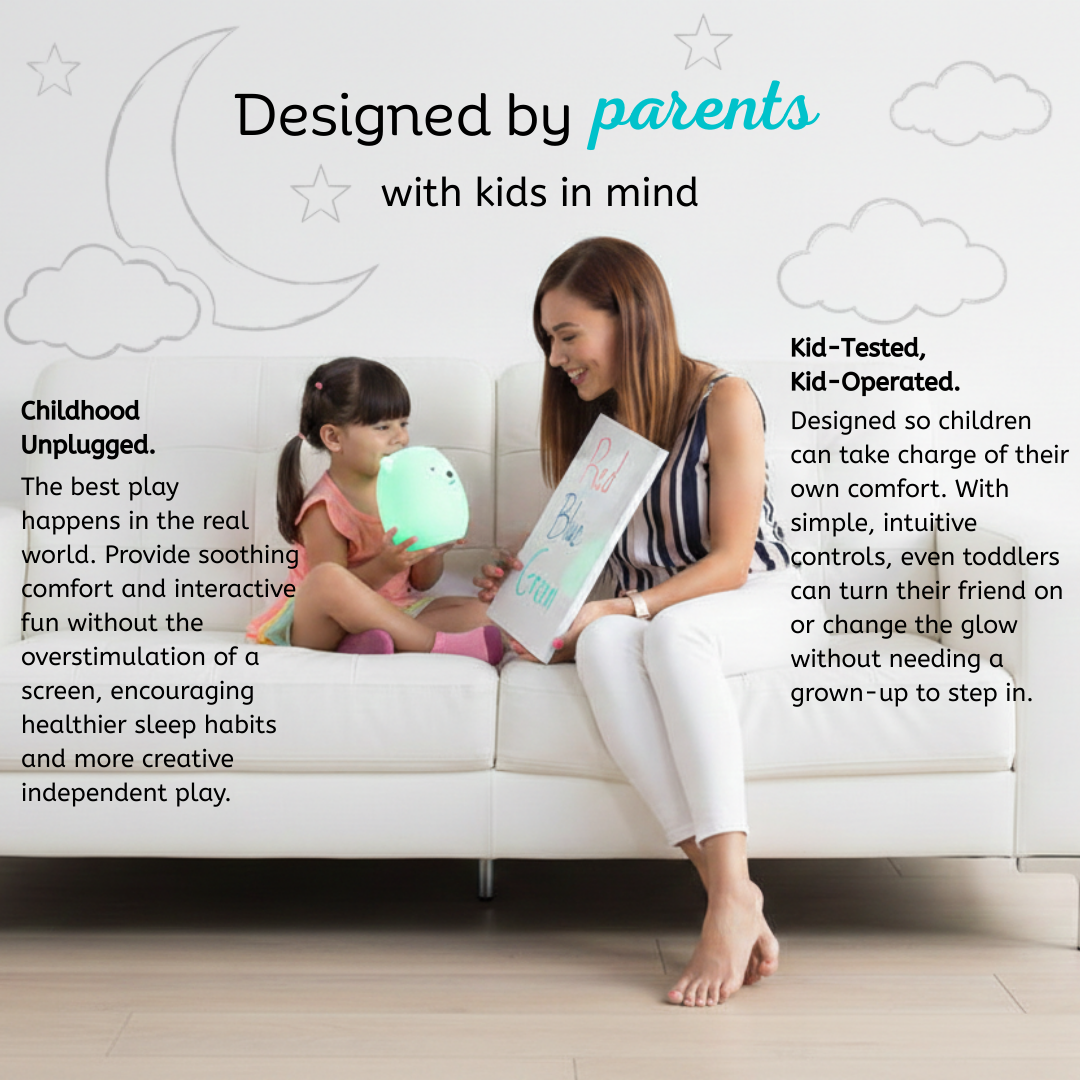 Soothing Light: 9 vibrant colors that change with a simple tap, keeping playtime exciting and fun.